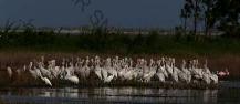 | 7/18/2014 South of Amelia Island, FL: The White Pelican flock was still at the lagoon with many other species. (See more pics from this area by clicking NEXT PAGE below.) We are surprised there are still fish to be had there! There were Osprey , Wood Storks , many Egrets and even Black Skimmers. |