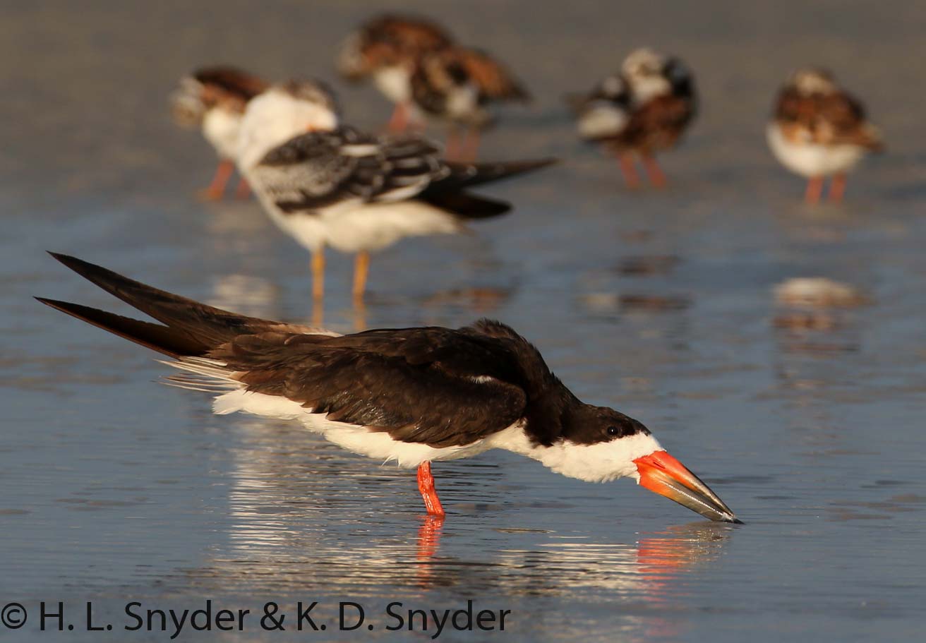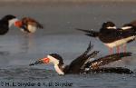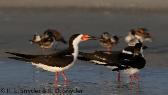 | 8/27/2015 Huguenot Memorial Park and Amelia Island, FL: The lighting was brilliant for taking a Black Skimmer flock bathing and preening. Also shown: Black-bellied Plover (Grey Plover), Common Grackle , Osprey , Great Black-backed Gull , Ruddy Turnstone , and Semipalmated Plover . |