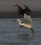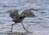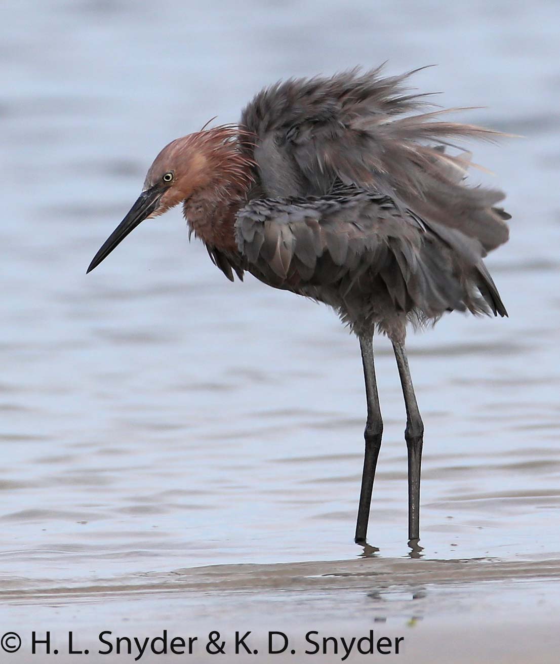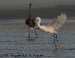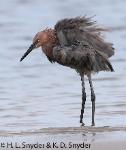 | 8/27/2015 Huguenot Memorial Park and Amelia Island, FL: Reddish Egret individuals were migrating through and it is always a treat to see these elegant birds. We also saw: Western Sandpiper , Northern Mockingbird , Least Sandpiper , Snowy Egret , Caspian Tern (some Juvs), Brown Pelican , and Brown Thrasher . |