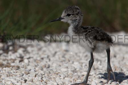 | 5/19/12 Shown: An Eastern Kingbird , Common Grackle , and a Black-necked Stilt family study. We had a family of four walk towards us on the road! The parents looked us over carefully and then herded their chicks towards water. |